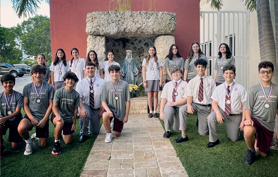 Annually, our students compete against other Catholic and private schools in various academic competitions including the Saint Brendan Academic Olympics, the Christopher Columbus High School Scholastic Olympics, and the Archbishop Coleman Carroll Academic Decathlon. Our students have a history of academic excellence and have proudly won over 80 academic medals since 2014. In 2014-2015, they brought home the 1st place overall trophy from both the St. Brendan and Columbus Competitions and in 2015-2016 earned 3rd place overall at St. Brendan.
