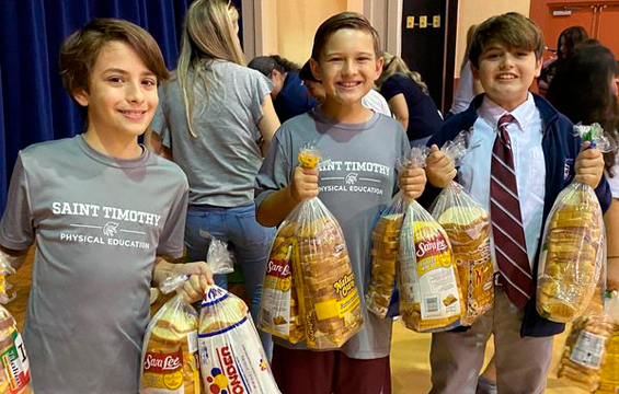 Service is at the heart of Saint Timothy. The school supports their sister school, Saint Bernadette in Haiti. Throughout the year, students learn about the need of their sister school and participate in fundraising activities to provide for Saint Bernadette. Partnering with various parish ministries, the students participate in the annual back to school supply drive, the Thanksgiving food drive and the Christmas toy drive. The STARS Mission Club promotes service opportunities for students and gives of their time in their community including visiting the Sisters of Charity.