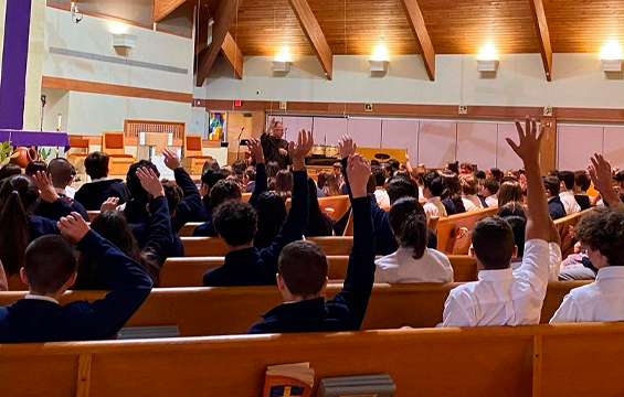 The academic year is full of faith experiences for students of all ages. Students participate in Mass and serve as liturgical ministers. Various liturgical experiences include the Living Rosary, All Saints Parade, Way of the Cross, May Crowning, and Rose & Candle Ceremony.
