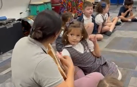 - Spanish is infused through music and prayers for students in PK2 – PK4.
