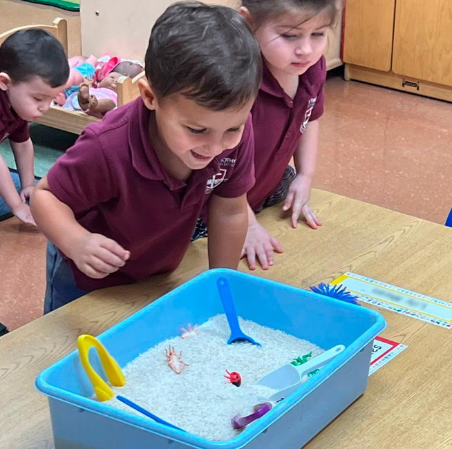 The program’s structure supports faith and consists of daily routines that offer faith experiences, balance passive and active learning experiences, meaningful environments and a curriculum that is designed to promote early literacy, inquiry-based learning, scientific and mathematical thinking, social/emotional development, family engagement opportunities and is aligned with our mission of providing a quality Catholic education.